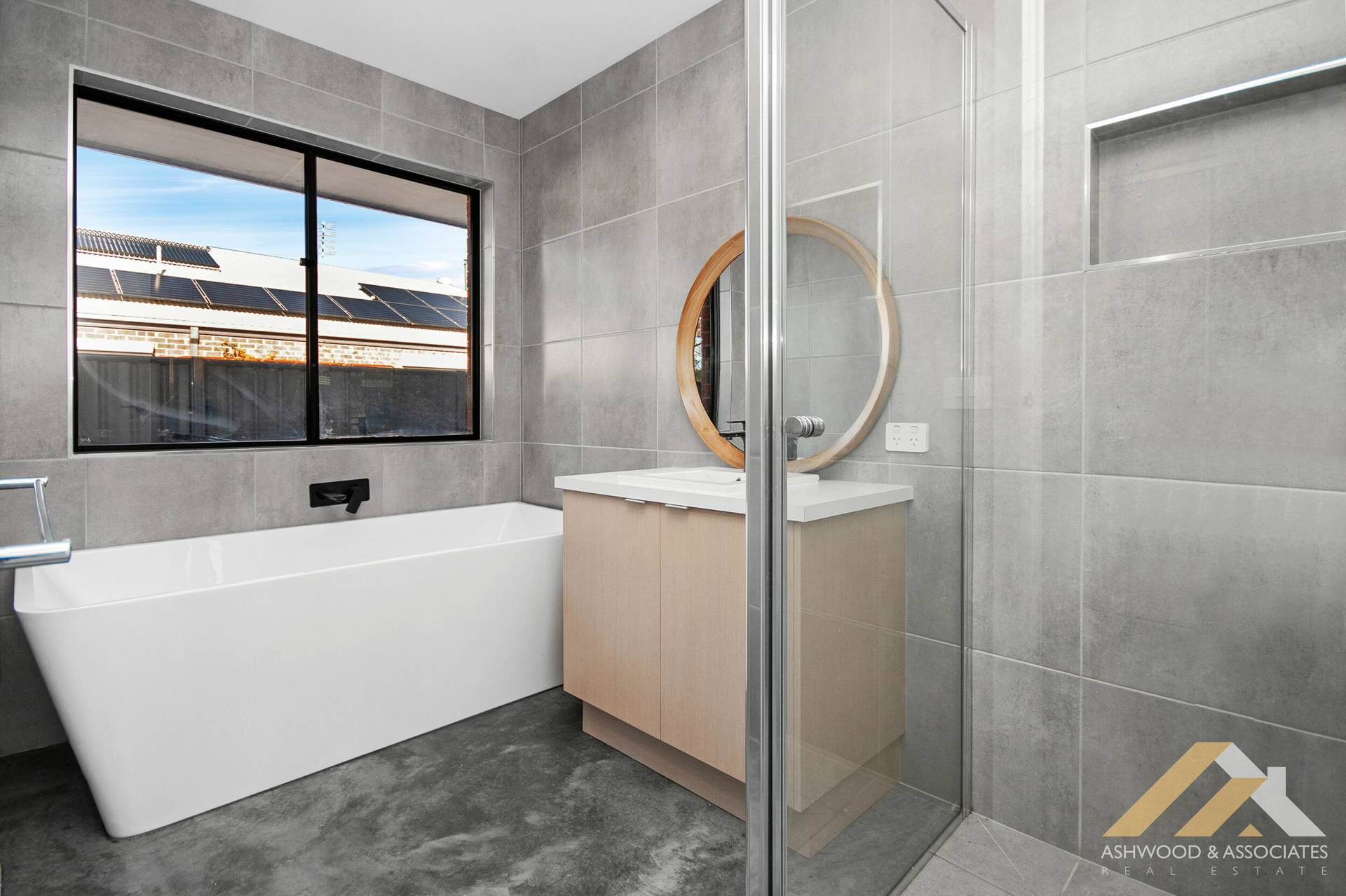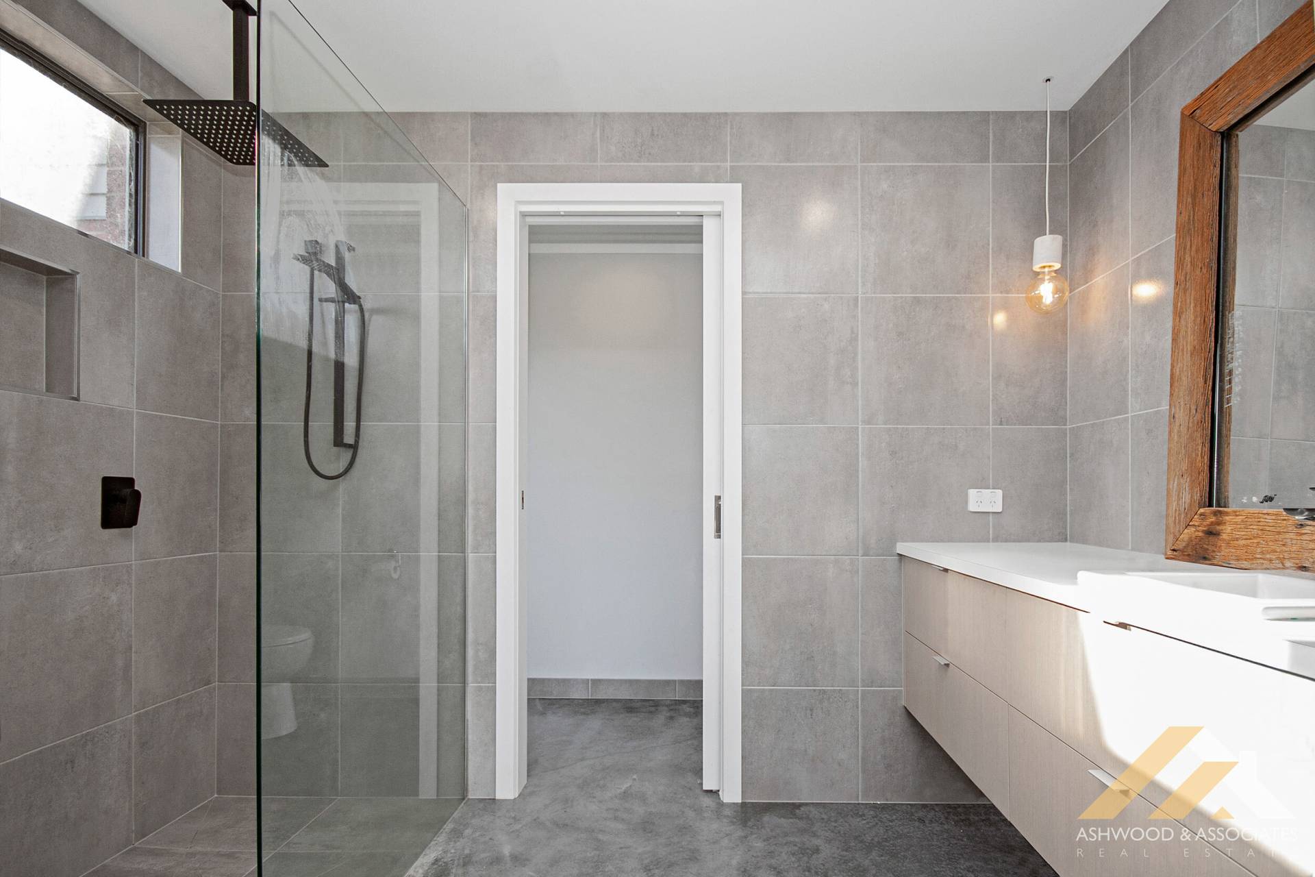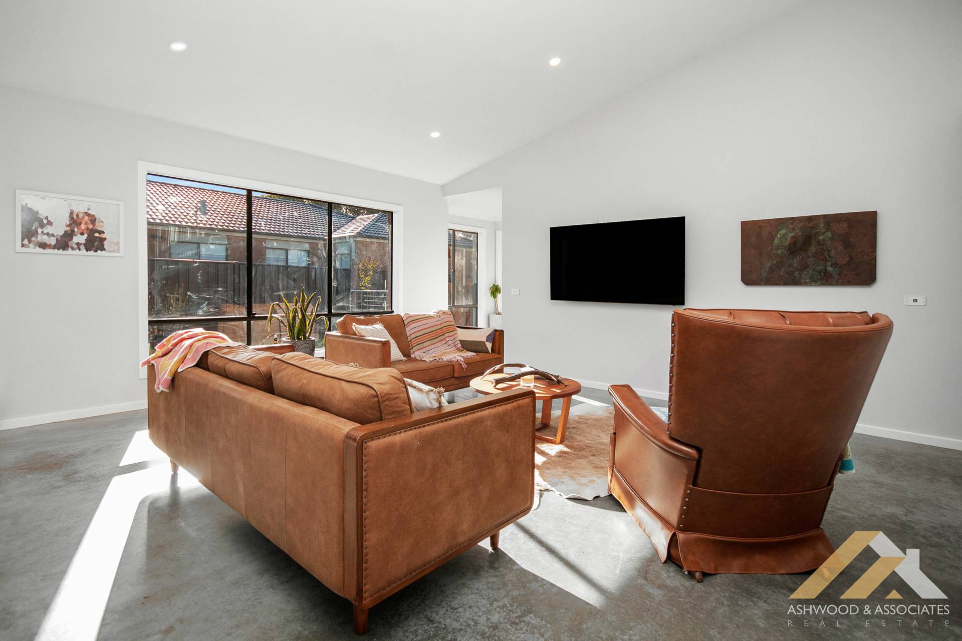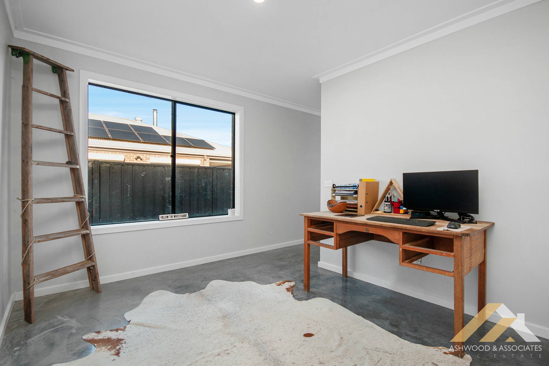 Polished concrete floors span the entire residence, adding a touch of contemporary elegance to every room, complete with split system heating/cooling ensuring year-round comfort. The designer wood fire crackles warmly in the living room, creating a cosy ambience perfect for gathering with loved ones on chilly evenings.