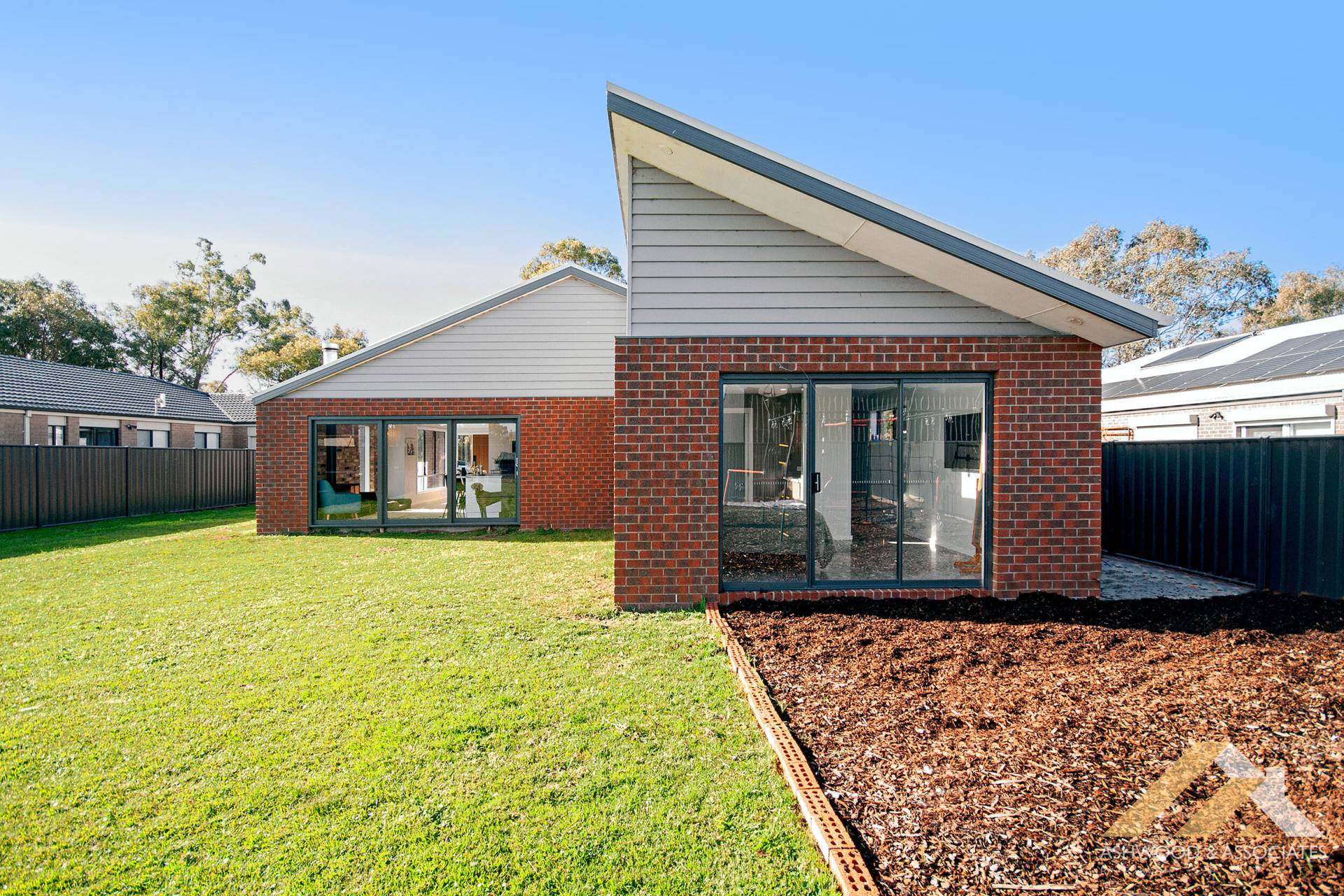The attention to detail is astounding, with old clinker red bricks tastefully incorporated into the front facade and interior living room, showcasing the harmonious blend of rustic and modern charm.