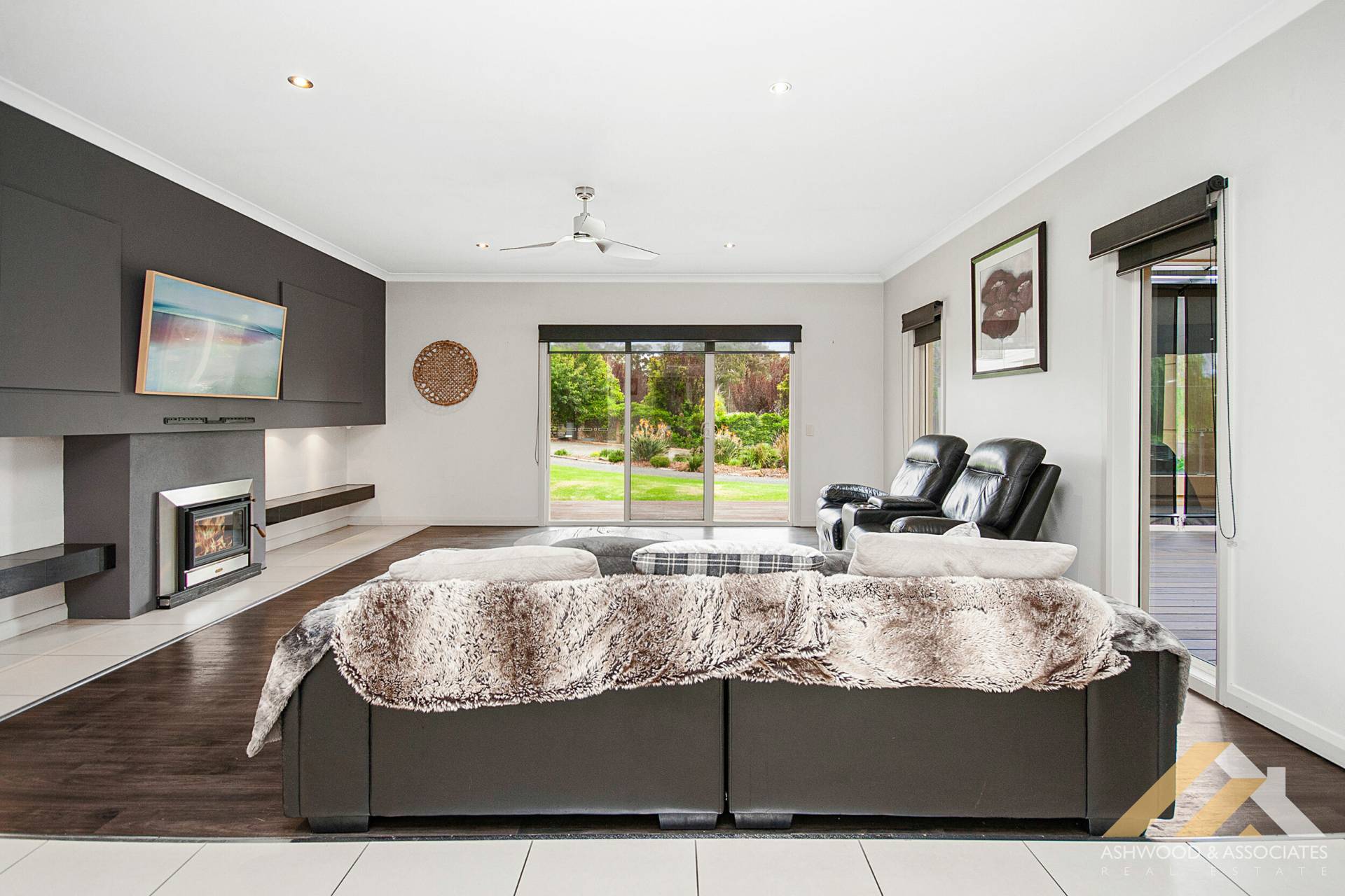 The expansive lounge room, complete with a cosy wood fire, is ideal for relaxation, while the additional rumpus/bar room provides the perfect space for entertaining guests. The master bedroom boasts a generous walk-in robe, an ensuite, and its very own private spa room.