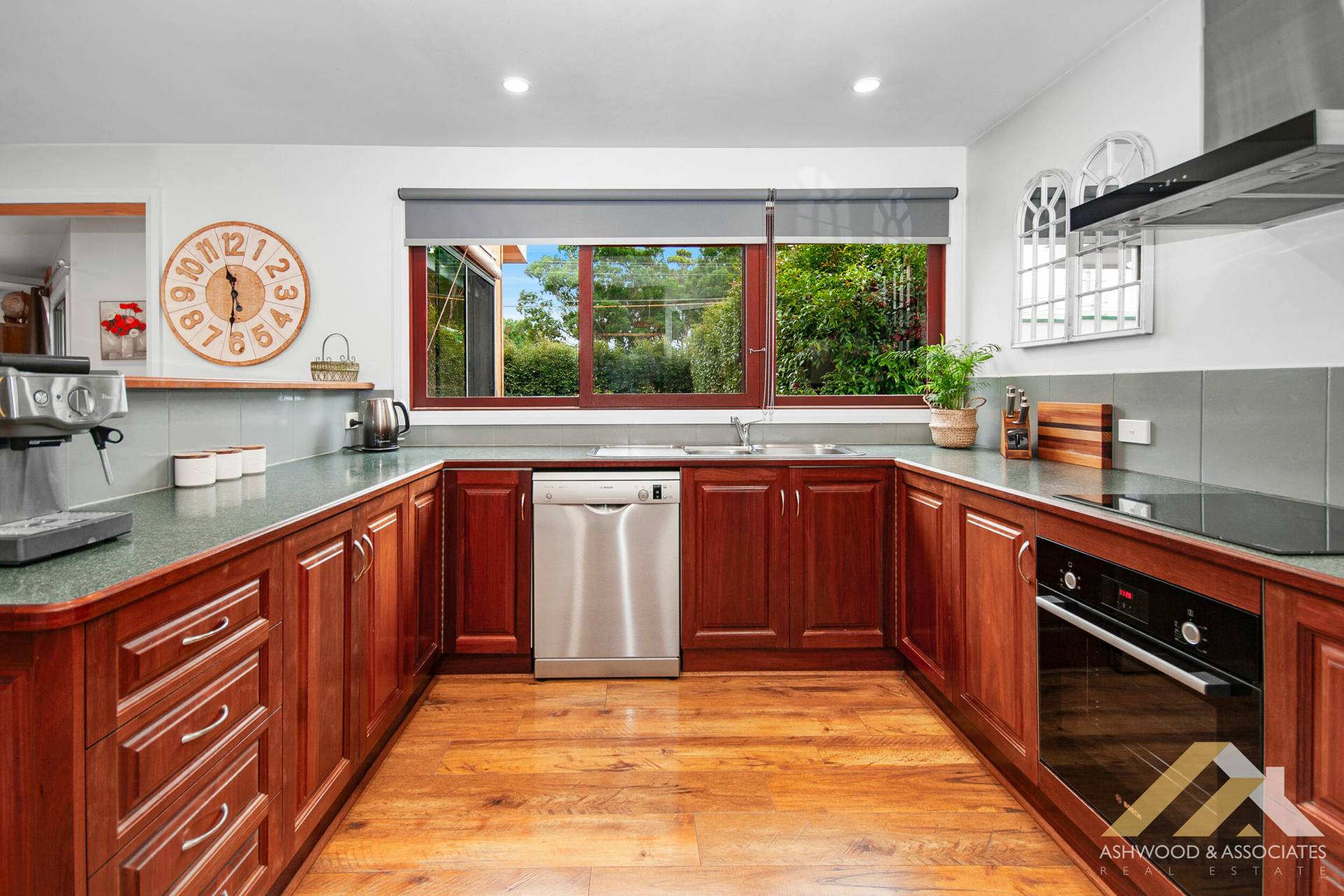 As you approach, be greeted by the intricate charm of a low-maintenance, manicured garden leading up to a welcoming boardwalk. Once inside, the heart of the home unfolds in an expansive open plan living area, grounded by elegant floating floorboards and warmed by a cosy wood fire. The allure of a freshly renovated kitchen will captivate culinary enthusiasts with its top-of-the-line appliances and sleek finishes.