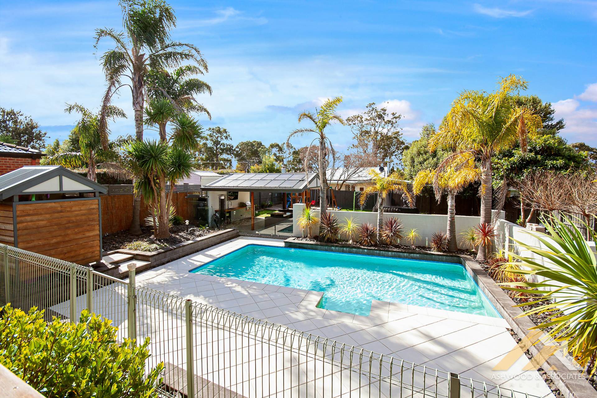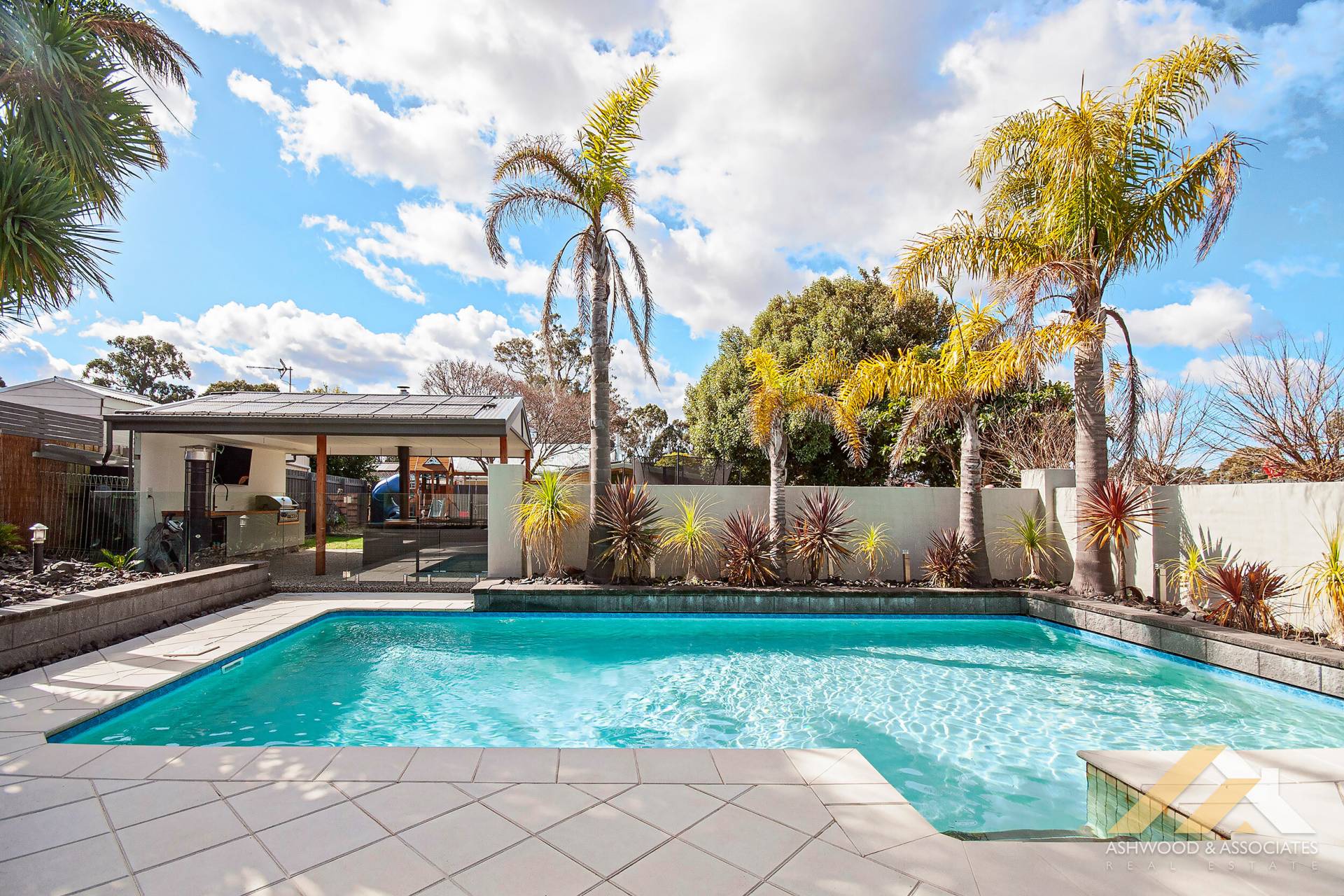The view looking out from the open plan dining family room is spectacular and resort like and takes in the massive swimming pool, tasteful and well-planned garden with a gazabo which is perfect for entertaining with a fully equipped built in kitchen and BBQ, plenty of lounge space along with a toilet close by. It’s just paradise!