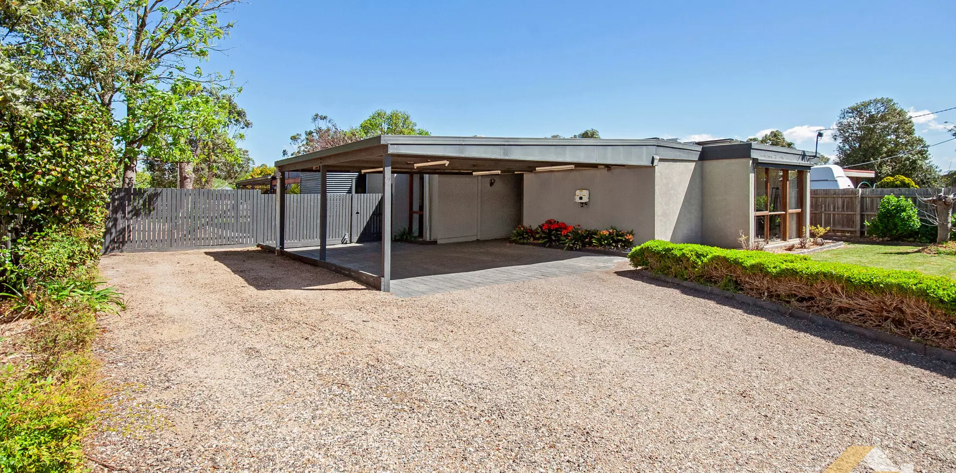 Double gates from the carport allow secure access for a your boat, trailer or recreational toys. A solar system enhancing energy efficiency, a low-maintenance garden with established fruit trees, and additional shedding complete the picture.