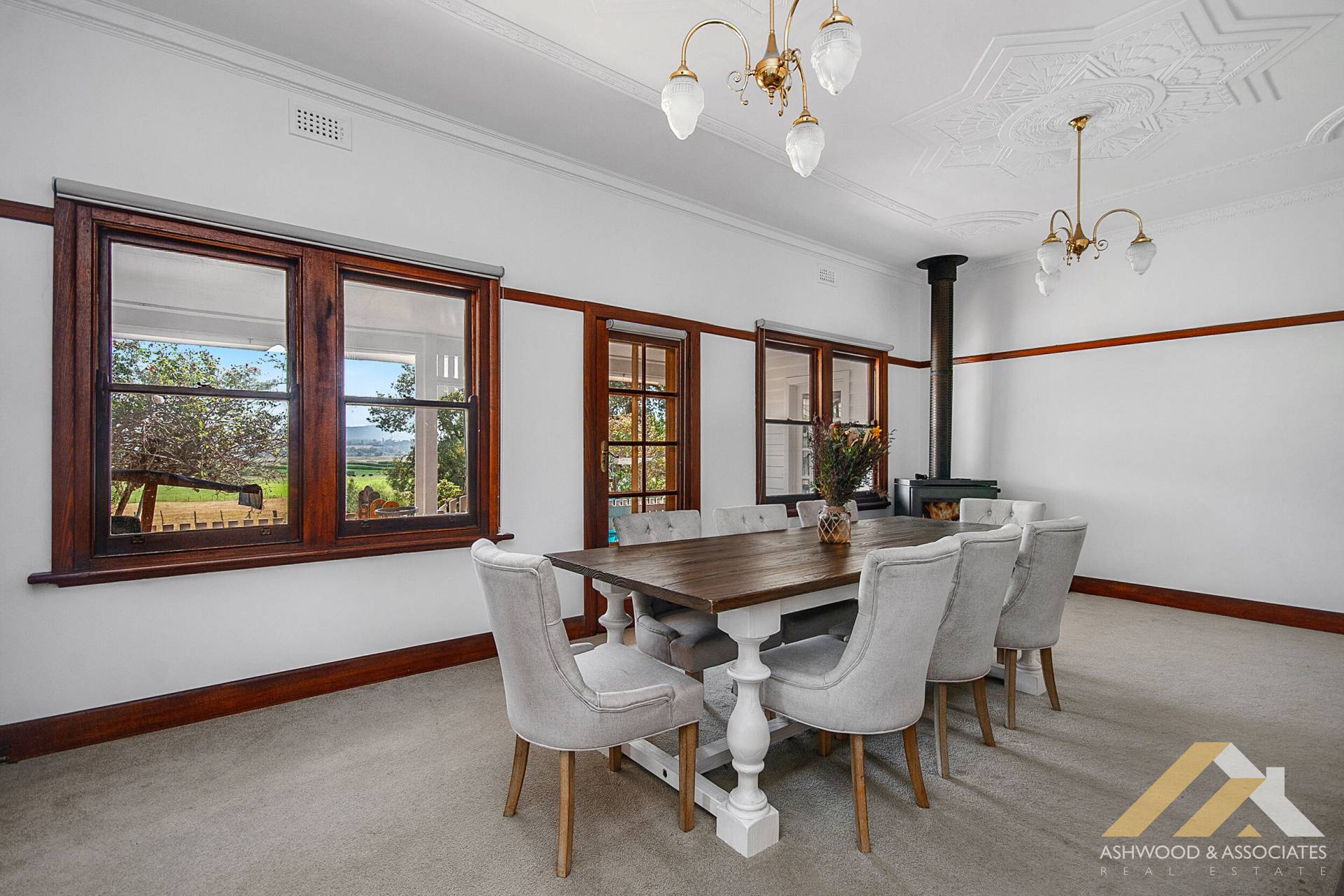 Inside, the home offers a spacious and functional floorplan featuring a large dining room along with two additional living areas, providing flexibility for family living, entertaining guests, or simply relaxing in comfort. The thoughtful renovations beautifully blend original character features with modern updates, while large windows throughout invite an abundance of natural light and perfectly frame the picturesque rural outlook.