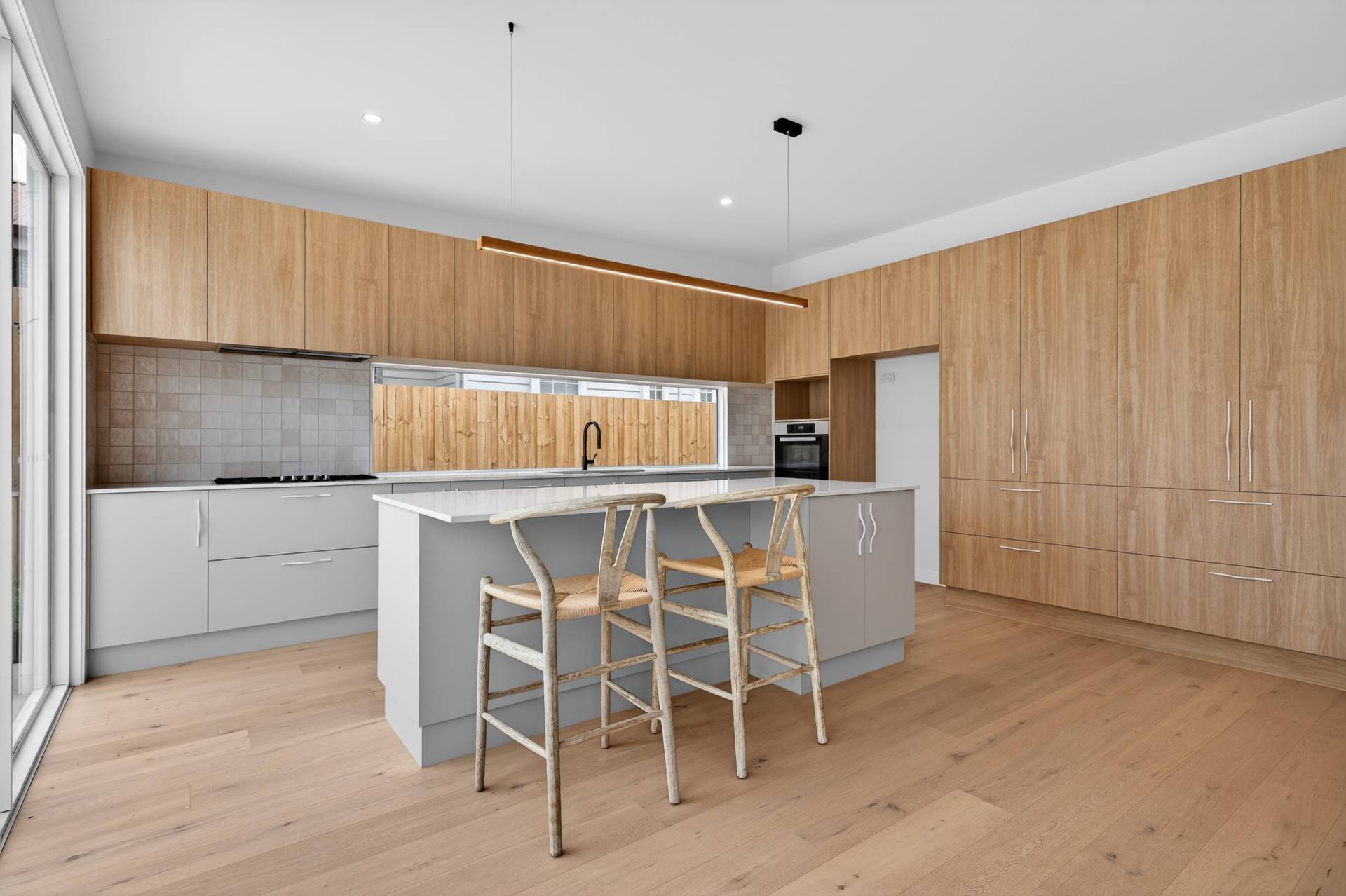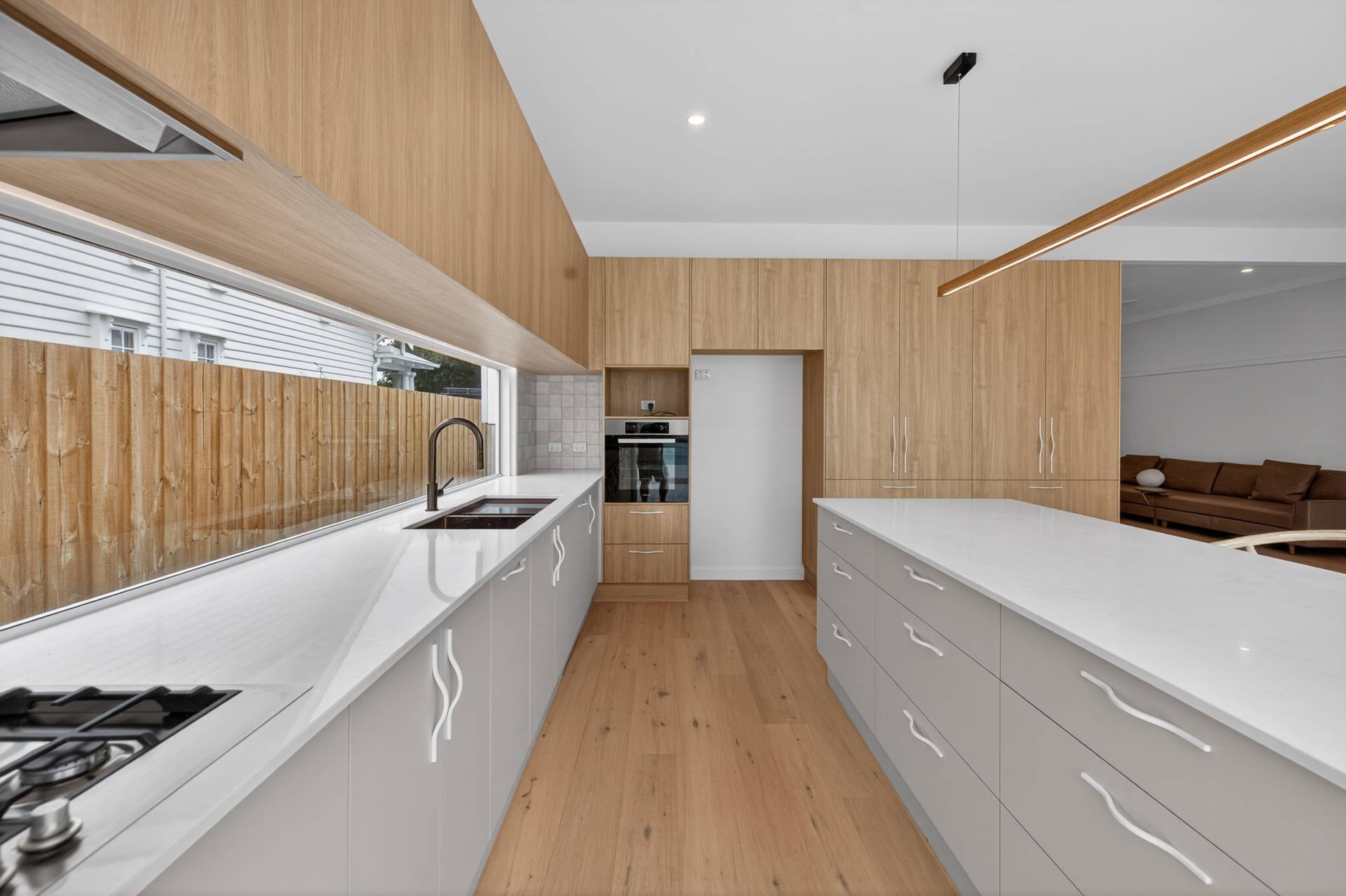 At the heart of the home, a large custom-designed kitchen will impress even the most discerning buyer, boasting extensive storage, an integrated dishwasher, and a conveniently positioned wall oven. This space flows effortlessly into the open plan living and dining domain, where expansive windows capture uninterrupted views across the rear yard, inviting natural light and creating a seamless connection between indoor and outdoor living.